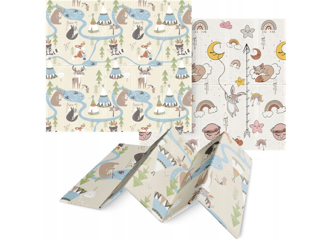 Podložku na hranie vyrobenú z odolného materiálu je možné prenášať v dodávanej taške. Podložku je možné poskladať. Detská podložka je obojstranná - na každej strane je iný motív, ktorý sa hodí do chlapčenskej i dievčenskej detskej izbičky