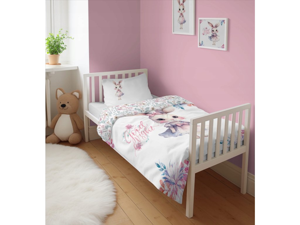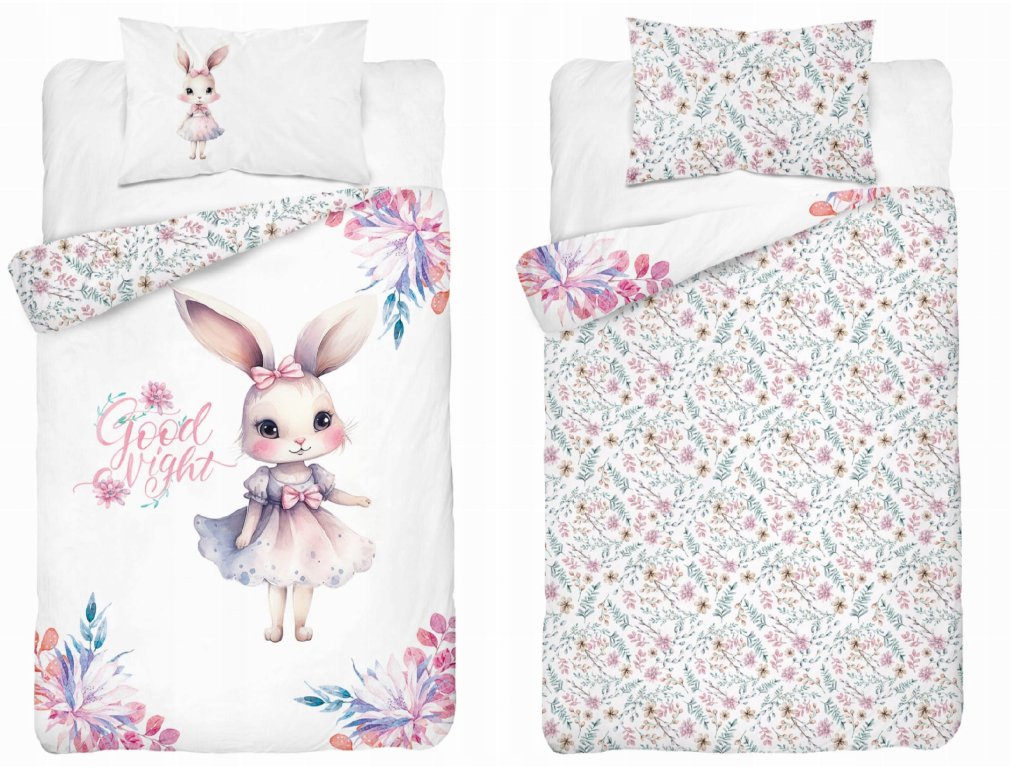 Posteľná bielizeň s motívom zajačik ružový - obojstranná.