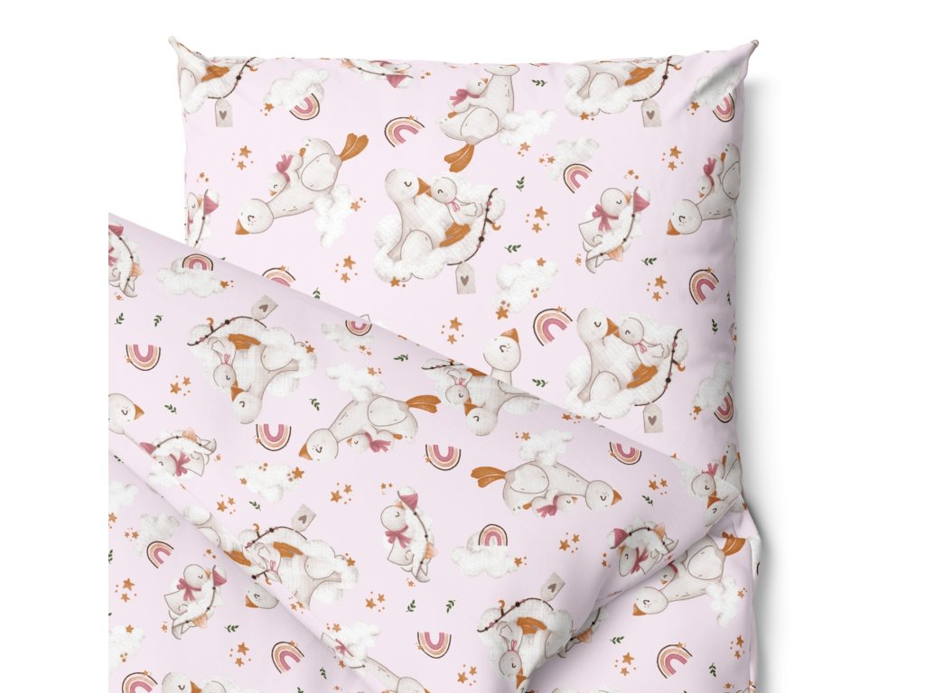 Bavlnené detské obliečky 120x90 60x40 cm Ružové kačky