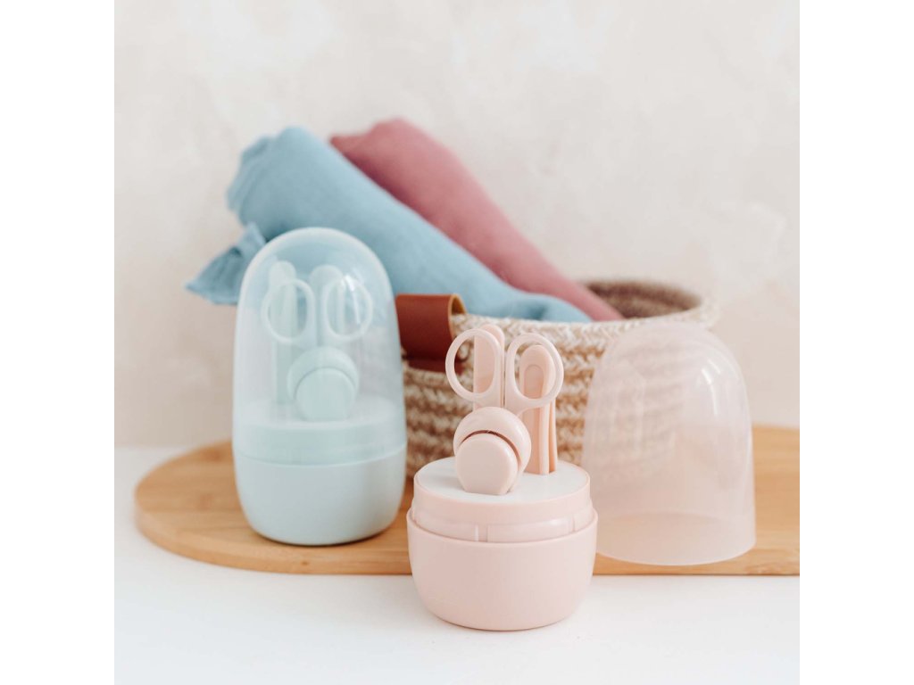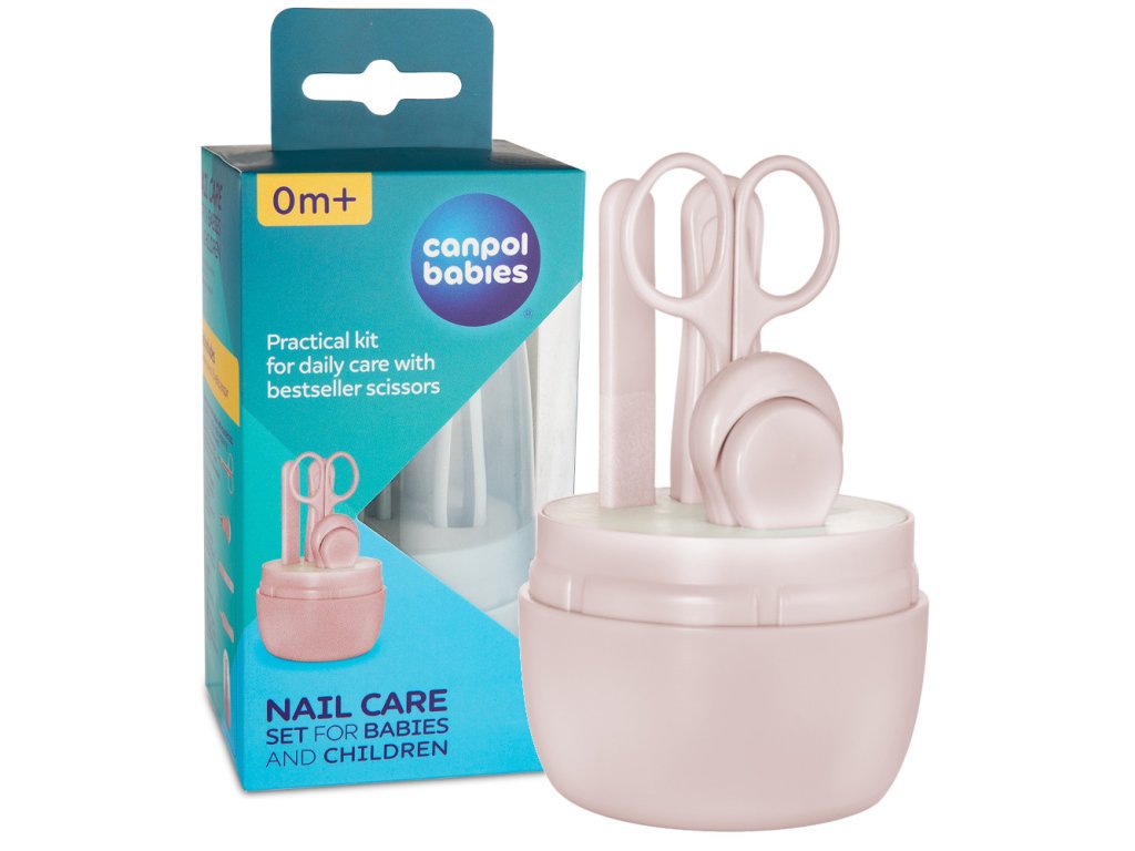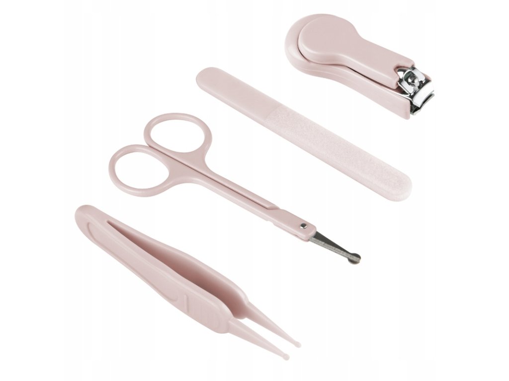 Kompletná sada na starostlivosť o detské nechty obsahuje nožničky, klieštiky, pinzeta a pilník. Nožničky majú zaokrúhlené špice, preto sú bezpečné a nehrozí nechcené pichnutie.