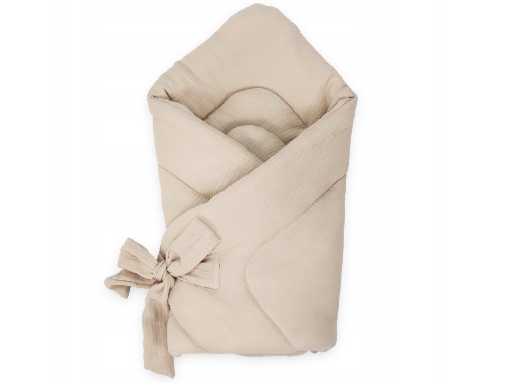 Pohodlná a mäkkučká mušelínová zavinovačka s viazaním na mašlu. Zavinovačka je zo 100% bavlnenej mušelínovej tkaniny s výplňou.