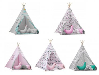 Štýlový detský teepee stan s vankúšmi v tvare zvieratiek z Madagaskaru