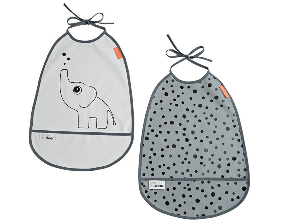 Dizajnový podbradník na zaväzovanie okolo krku. Podbradníky sú vodeodolné a vybavené vreckom, ktoré zachytí padajúce jedlo.