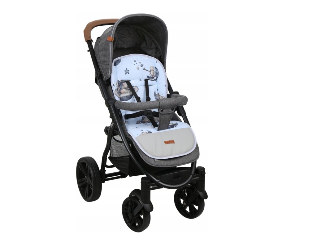Štýlová obojstranná podložka do športových kočíkov je určená na prechodné obdobie. Podložka je na jednej strane vyrobená z odolnej bavlnenej látky so vzorom, na druhej strane z mäkučkej minky tkaniny. V spodnej časti je z oboch strán vybavená odolnou oteru odolnou časťou.