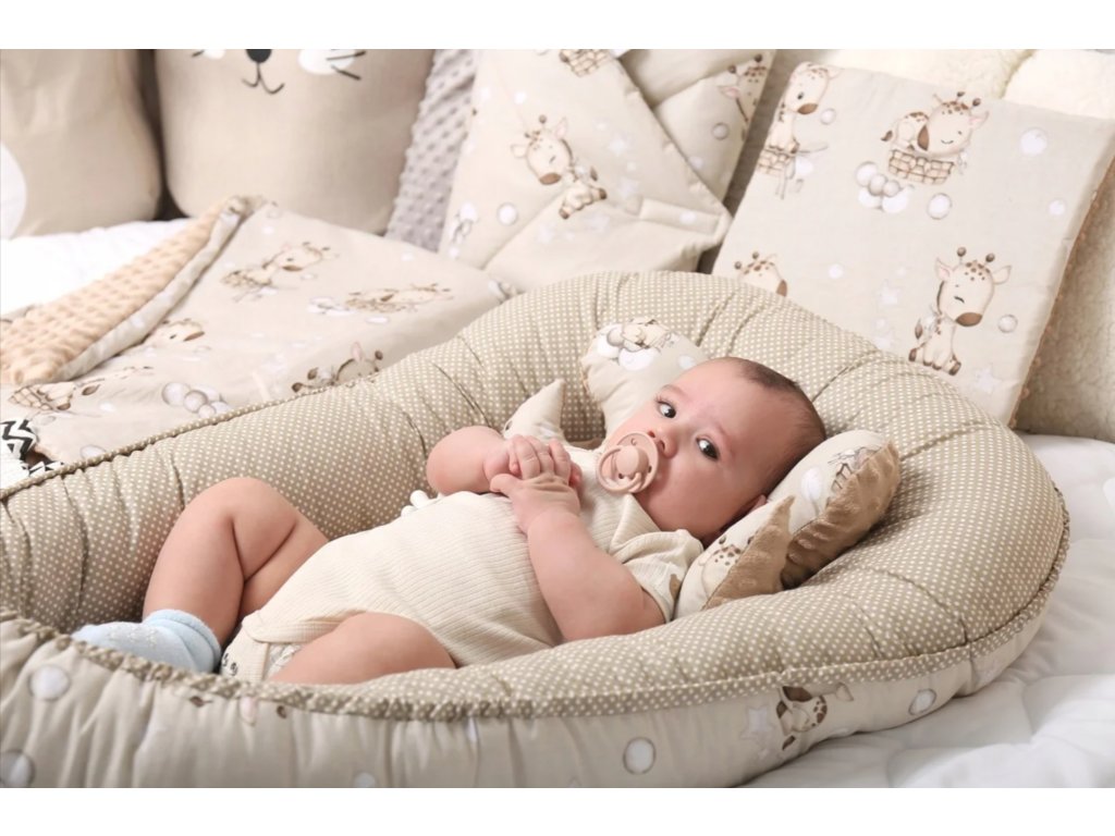 Štýlový set do postieľky či kočíka pre bábätko. Všetky časti zostavy sú farebne zladené a vyrobené z bezpečných bavlnených materiálov. Vankúšiky, deka a matrac sú vyrobené z príjemného minky materiálu.