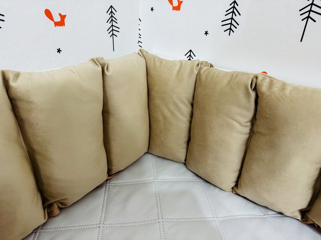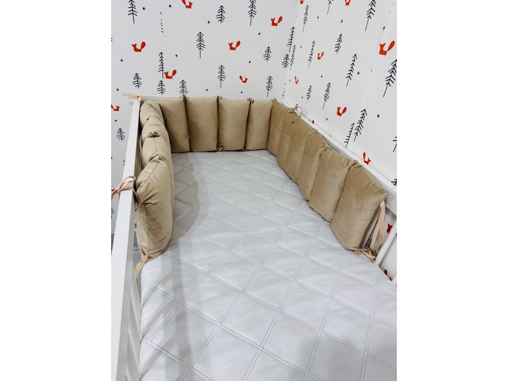 Mantinel je vyrobený z príjemnej a mäkkej 100 % Velvet bavlny, ktorá sa ľahko čistí, dokonca ani po niekoľkých praniach mantinel nestráca svoj tvar alebo vlastnosti. Je vyplnený pružnou polyesterovou výplňou, ktorá napomáha správnej cirkulácii vzduchu, a tak nezhromažďuje prach ani ho nepriťahuje.