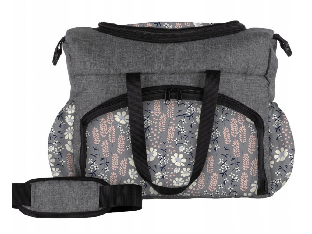 Tašku je možné nosiť na pleci alebo zavesenú na kočíku. Hlavný aj bočný priečinok je uzatvárateľný na zips. Vo vnútri veľkého priečinku sú menšie priečinky na vloženie detských fľašiek alebo iného príslušenstva.